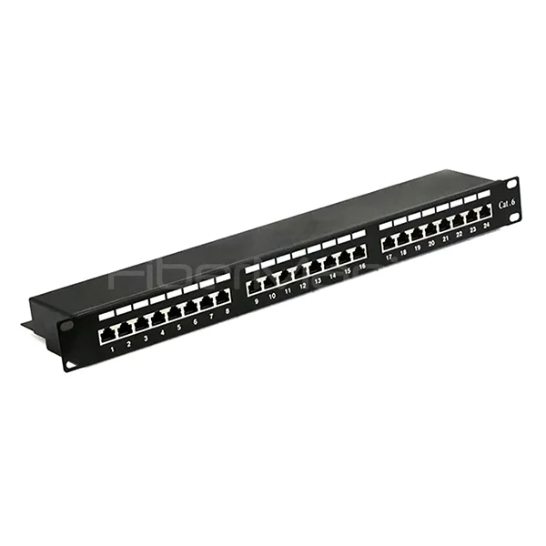 19” 1U CAT6 FTP Patch Panel with 24 ports provides high-density network connectivity for structured cabling.