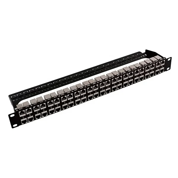 19” 1U High Density Blank Patch Panel Installed With Inline Couplers Shielded 48 Ports