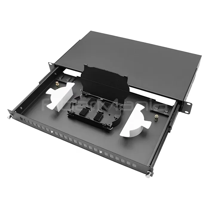 The FPP-12SCB-1U-S 1U Sliding Fiber Optic Patch Panel is designed to deliver efficient and organized fiber management in high-density network environments. With a 12-port capacity, it supports fiber termination, splicing, and patching in a compact 1U form factor. The sliding tray design allows smooth pull-out access, making installation, inspection, and maintenance simple without disturbing existing fiber connections.