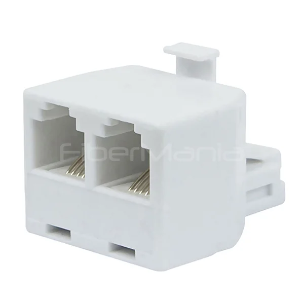 CAT.3 RJ11 6P4C adapter splits one line into two, suitable for telephones, modems, and fax machines.