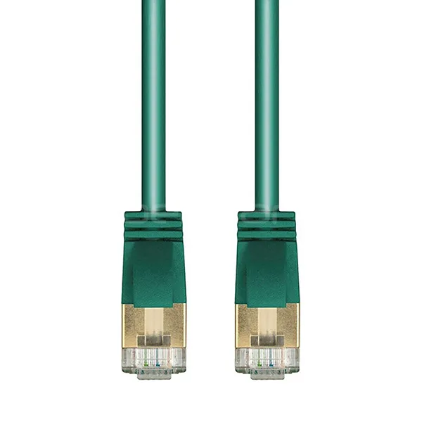 Green CAT.6A STP slim patch cable with 36AWG stranded copper for 10Gb Ethernet networks.