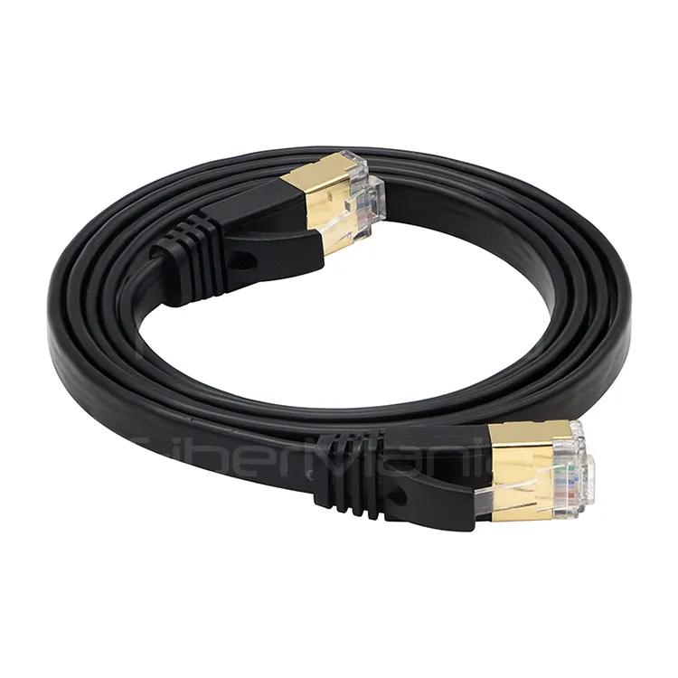 • Black CAT.7 STP flat patch cable, 30AWG stranded copper, supports 10Gb Ethernet and 600MHz bandwidth.