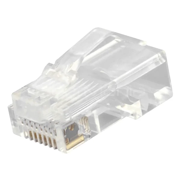 CAT5e UTP modular plug with a transparent housing and bend latch design for better strain relief and reliable everyday performance.