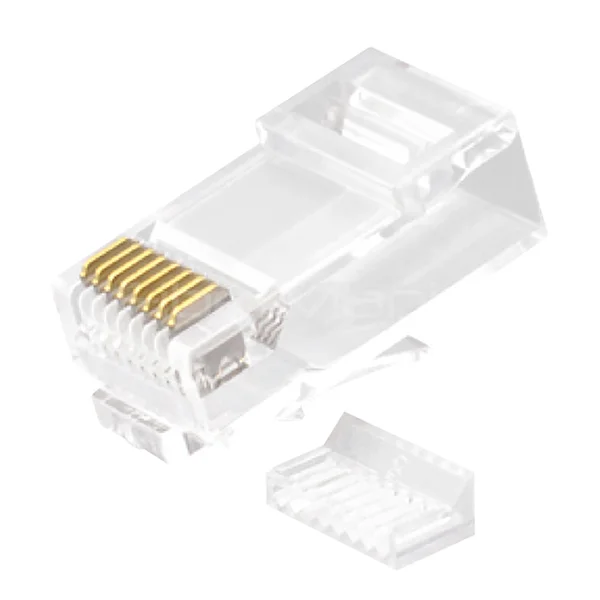 CAT6 RJ45 modular plug with a transparent polycarbonate housing and 2-piece structure for easier alignment and consistent terminations.