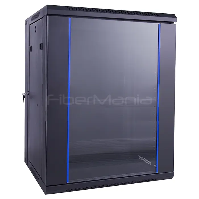 FiberMania’s FSP Wall Mount Cabinet offers a robust solution for housing 19” network and telecom equipment. The cabinet features a welded frame for reliability and an assembled frame structure that simplifies handling and shipping. Its design supports both wall-mounted and freestanding installations, with optional adjustable feet and castors for enhanced flexibility. The cabinet provides easy access to equipment through a toughened glass front door (>180° opening) and removable side panels. Knock-out holes on the top and bottom panels allow convenient cable entry. Powder-coated SPCC steel ensures long-lasting durability and a professional appearance.