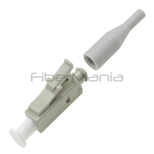 The LC Multimode Simplex Connector from FiberMania, featuring a beige housing and 0.9 mm boot, is engineered for efficient and reliable multimode fiber connections. Designed for 50/125 µm or OM1 multimode fibers, it employs an epoxy-based assembly with a pre-domed ceramic ferrule, ensuring precise alignment, low insertion loss, and ultra-low back reflection. Its LC simplex design is perfect for compact installations in patch panels, wall outlets, and optical network equipment, supporting LAN, WAN, broadband, and FTTx applications.