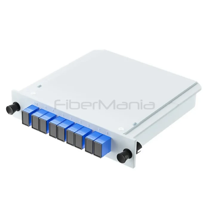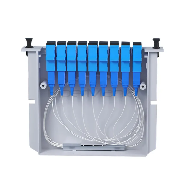 This PLC splitter module supports a range of split ratios including 1×2, 1×4, 1×8, 1×16, and 1×32, allowing flexible network design and scalability.