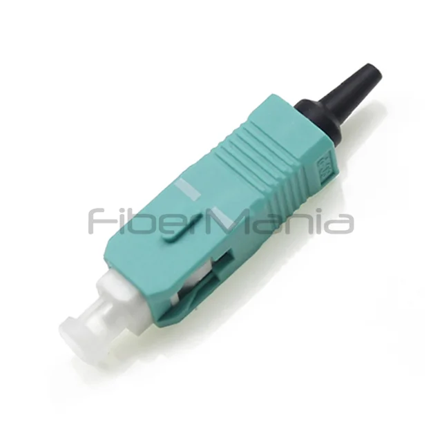 The SC OM3 Connector with aqua housing and 0.9 mm boot from FiberMania is designed for reliable multimode fiber connections in high-speed LAN, WAN, broadband, and FTTx networks. Featuring an epoxy-based assembly with pre-domed ceramic ferrule, it delivers precise fiber alignment, low insertion loss, and ultra-low back reflection. Optimized for OM3 50/125 µm fibers, this SC simplex connector is ideal for patch panels, wall outlets, and optical network equipment requiring professional-grade optical performance.