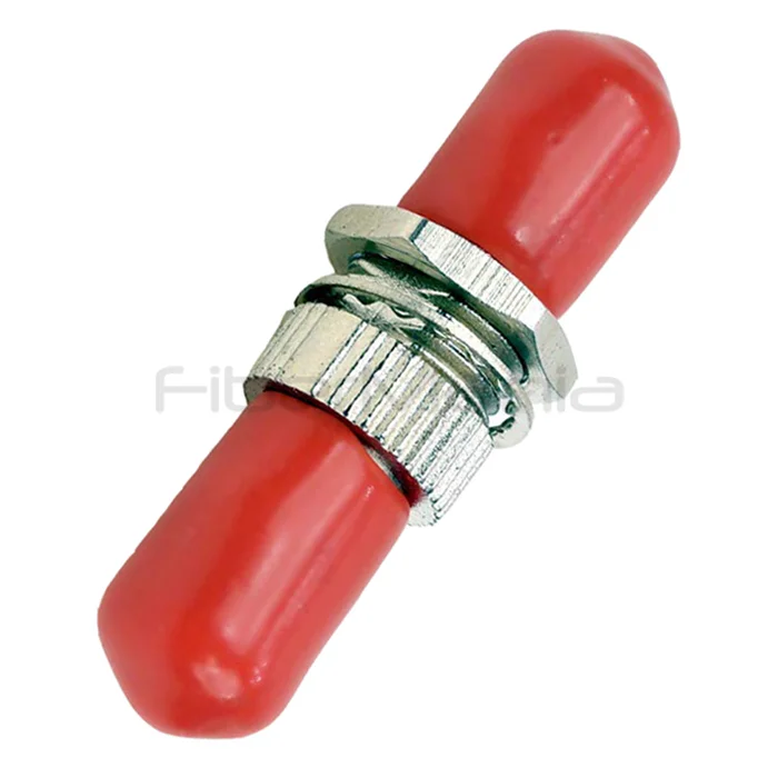ST-ST simplex metal adapter with red cap for multimode identification.
